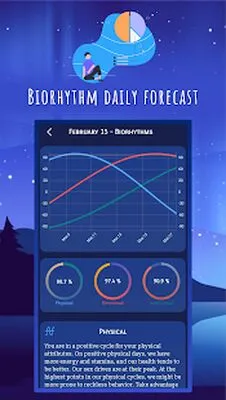 Also, the **biorhythm** aspect? Pure gold. Seriously, who thought they could blame their moods or that one awkward conversation with Jeremy from HR on their ‘low physical cycle’? I was having a day where I just couldn’t deal with people. So I opened up the app, saw my biorhythm chart in a tailspin, and suddenly, I felt less like a hermit and more like a genius navigating the chaotic waters of life. I mean, it's on my side, right? The line charts become the ultimate scapegoats for all my social failings! "Oh, sorry, Jeremy, it’s just my biorhythm!”
